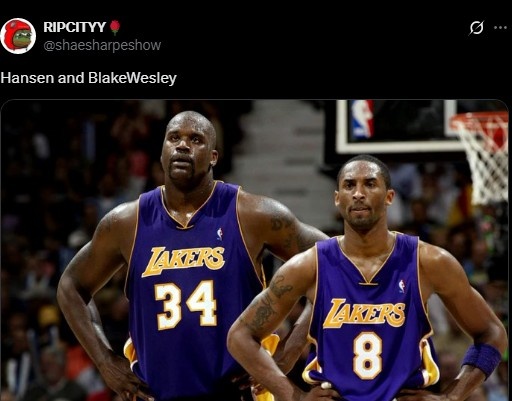 拓媒晒奥尼尔&科比合照调侃:今天的杨瀚森和布雷克-韦斯利